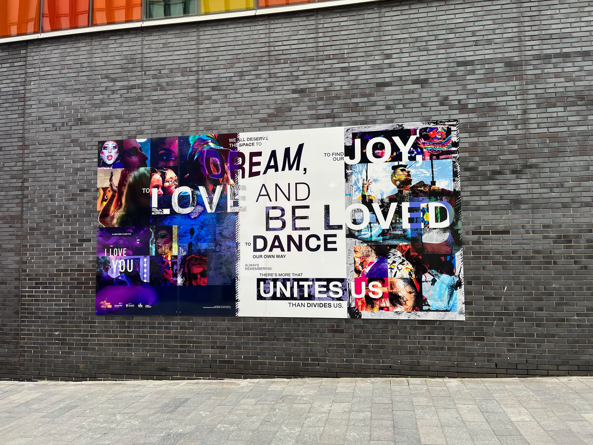 Billboard artwork to celebrate queer culture in Liverpool One. Collage created using photographs by local photographer, Michael Parry.