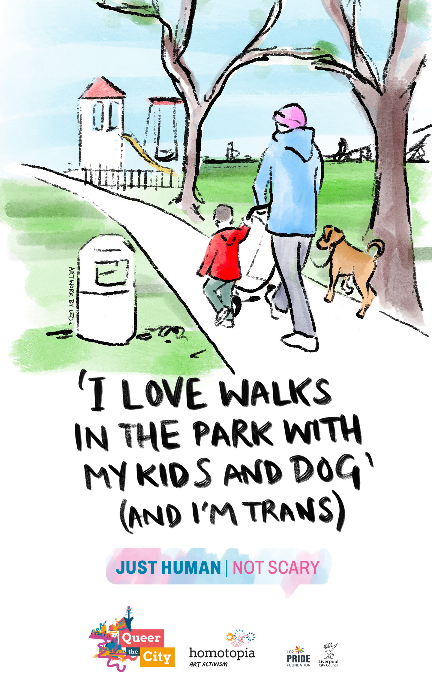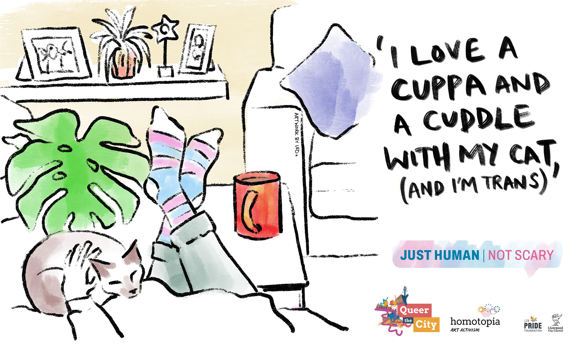 The anti-trans rhetoric that mainstream media and some of our politicians spout is creating a living hell for my community. We are constantly painted as something to fear and I wanted to create a campaign that represented as we are, just human with lives to live. I'm not a confrontational person and choose to do my activism in a quiet gentle way that I hope at least might change one person's perception.